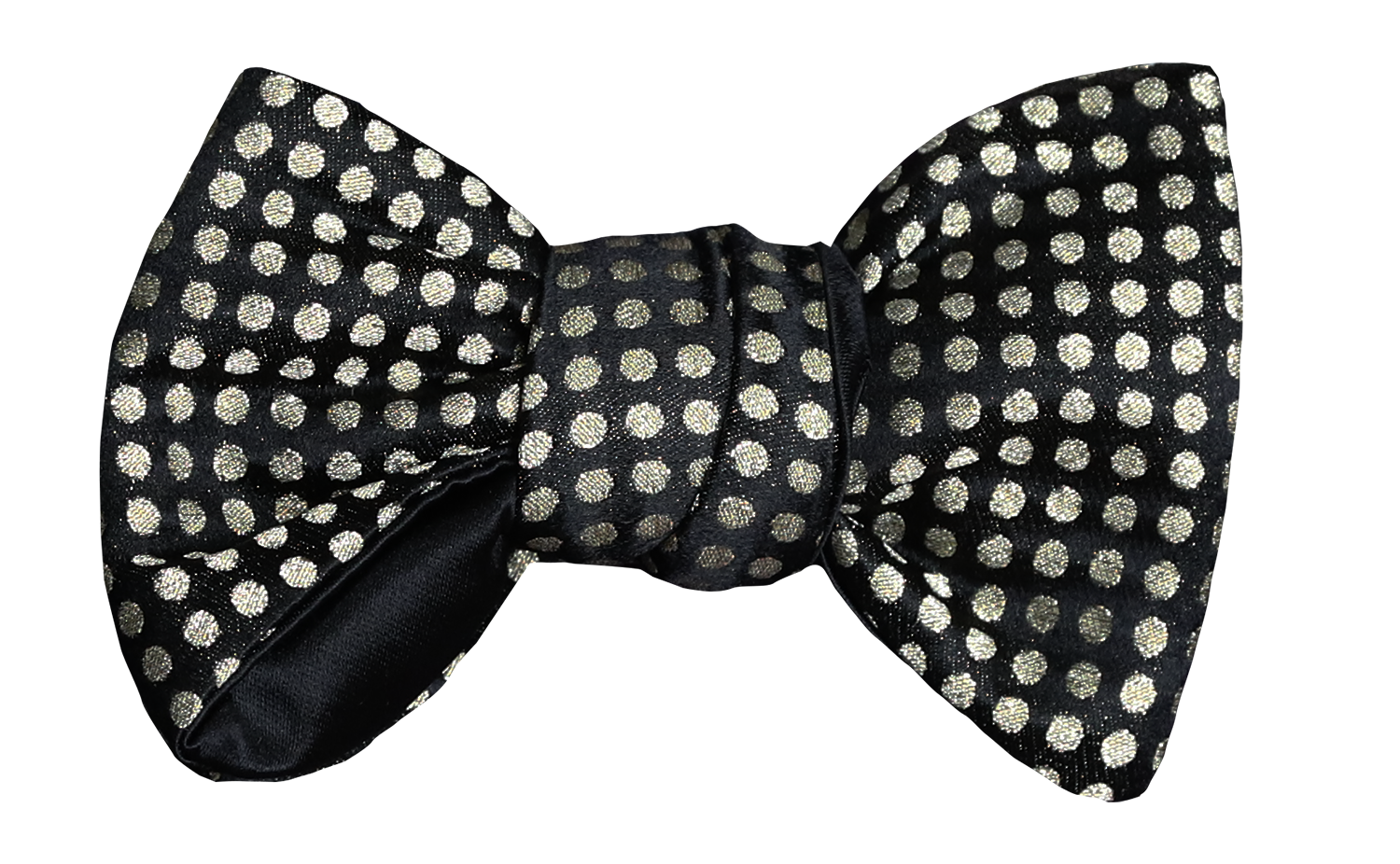 Danny - Black And Gold Lurex Silk Polka Dot With Black Mogador Satin Silk Reverso Bow Tie