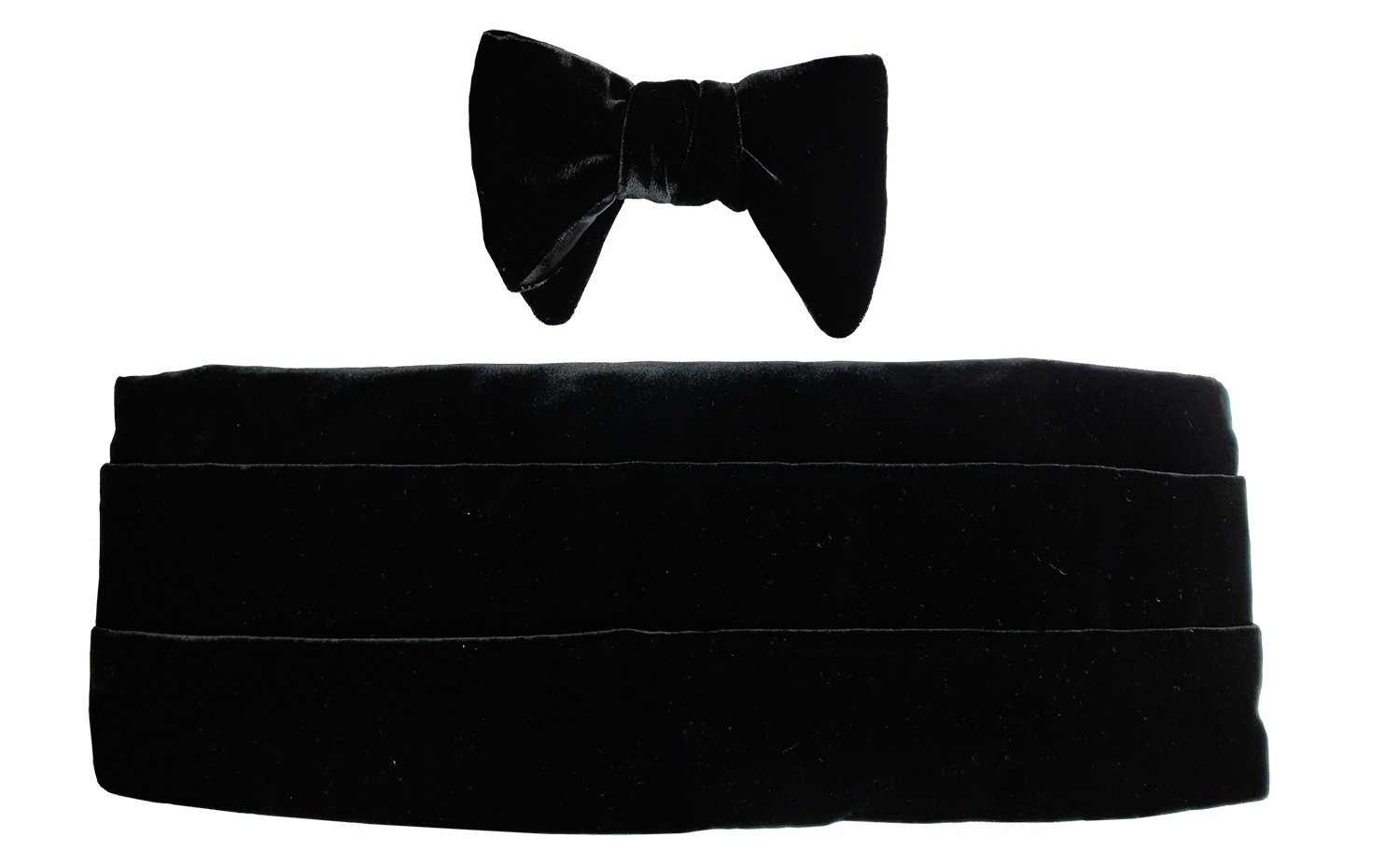 The Majestic Velvet Set - A Custom Made Bow Tie (Self-Tying Or Pre-Tied) With A Matching Black Velvet Cummerbund In Our Superlative Viscose Silk Velvet.