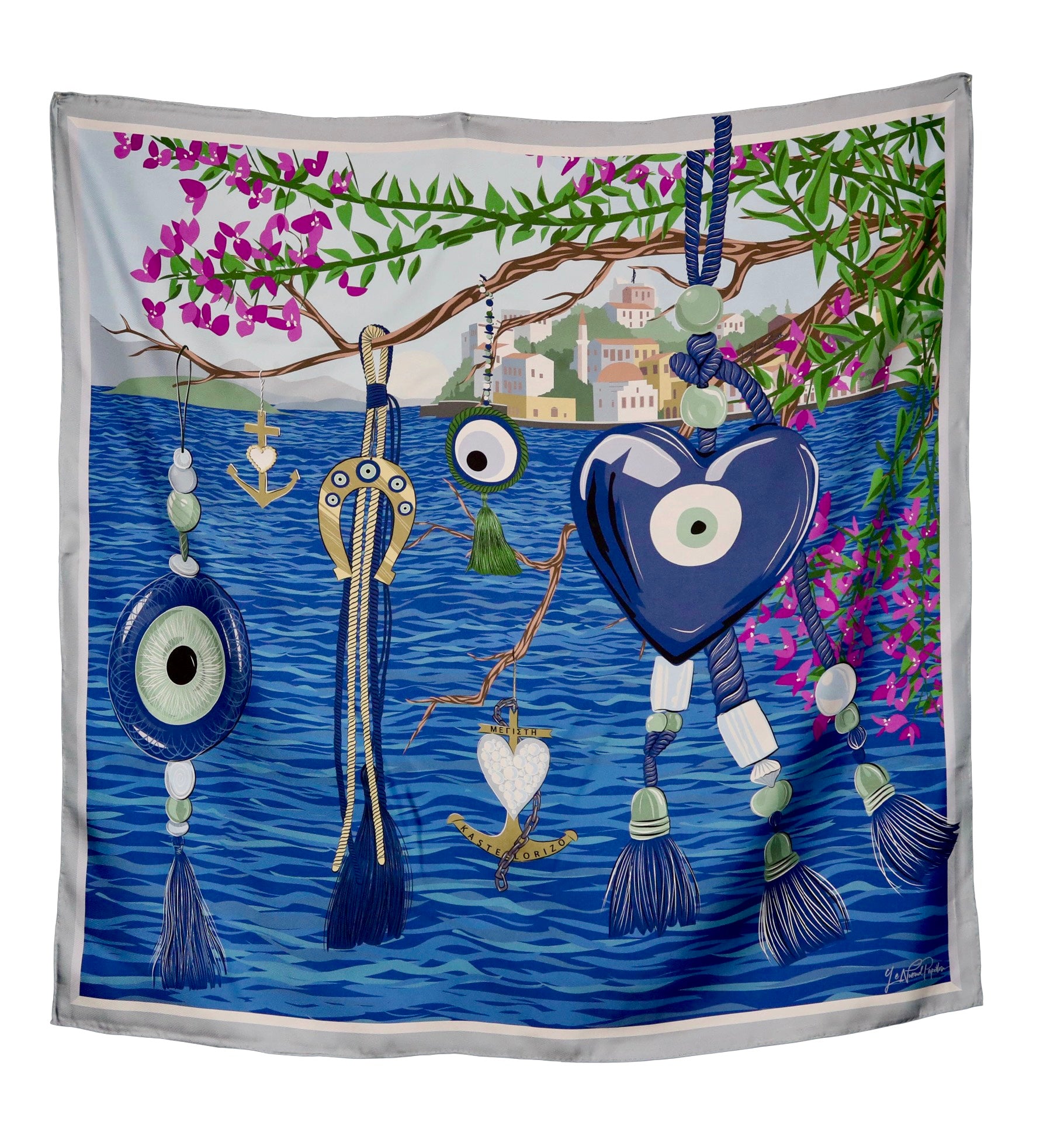 Kastellorizo Double Printed 90cm Silk Twill Scarf