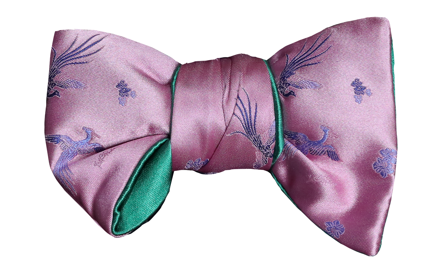 Oskar - Pink Meiji Palace Bird Silk With Mint Green Satin Silk Reverso Bow Tie