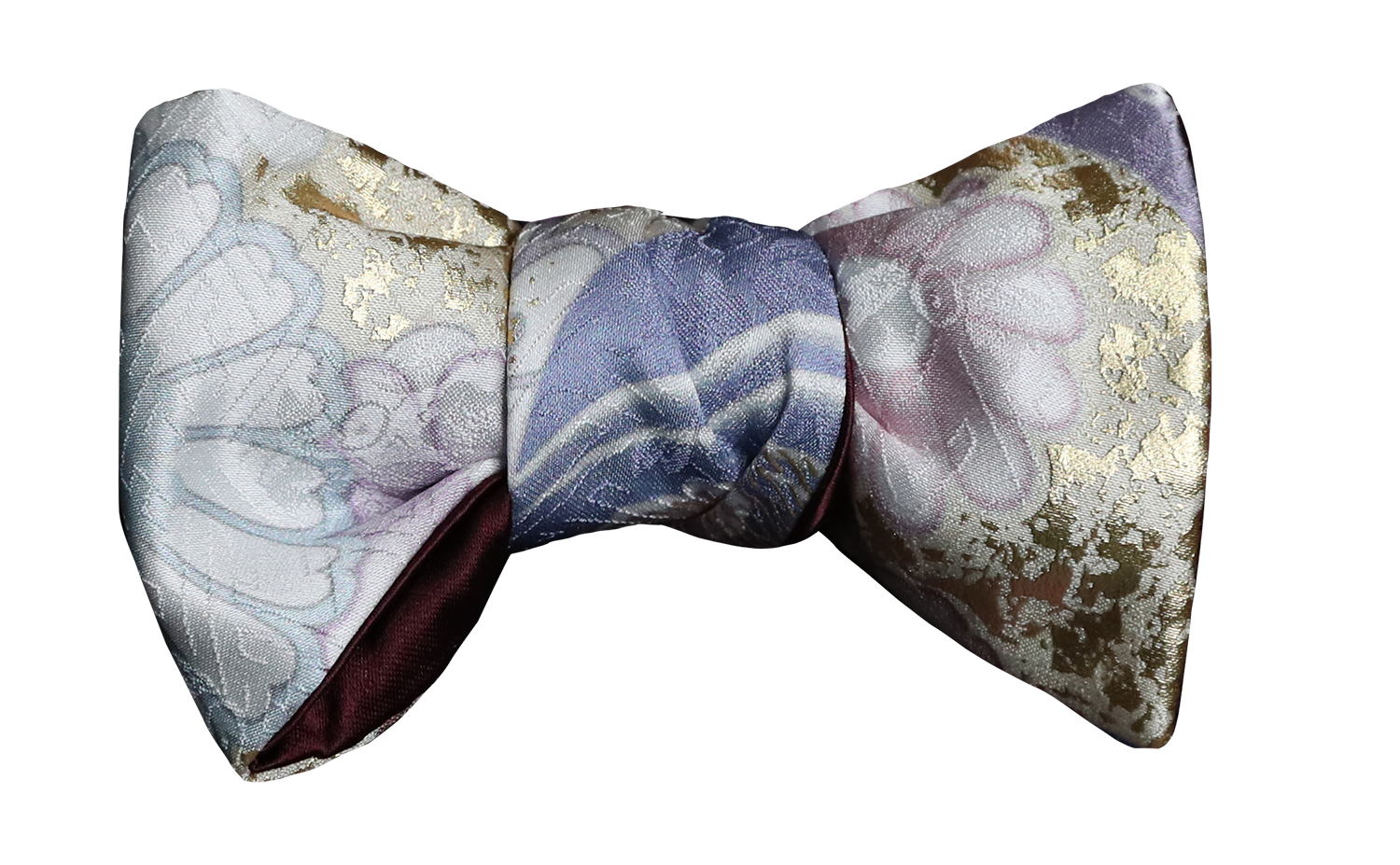 Daigo - Japanese Yuzen Silk With Burgundy Mogador Satin Silk Reverso Bow Tie