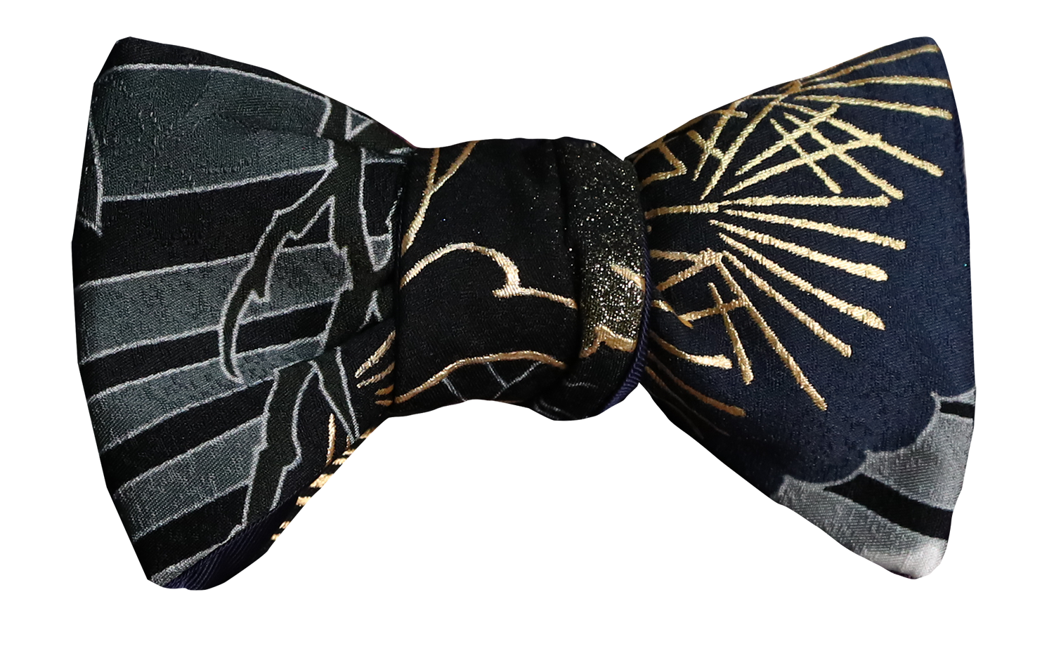 Sora - Japanese Yuzen Silk With Navy Serge Twill Silk Bow Tie