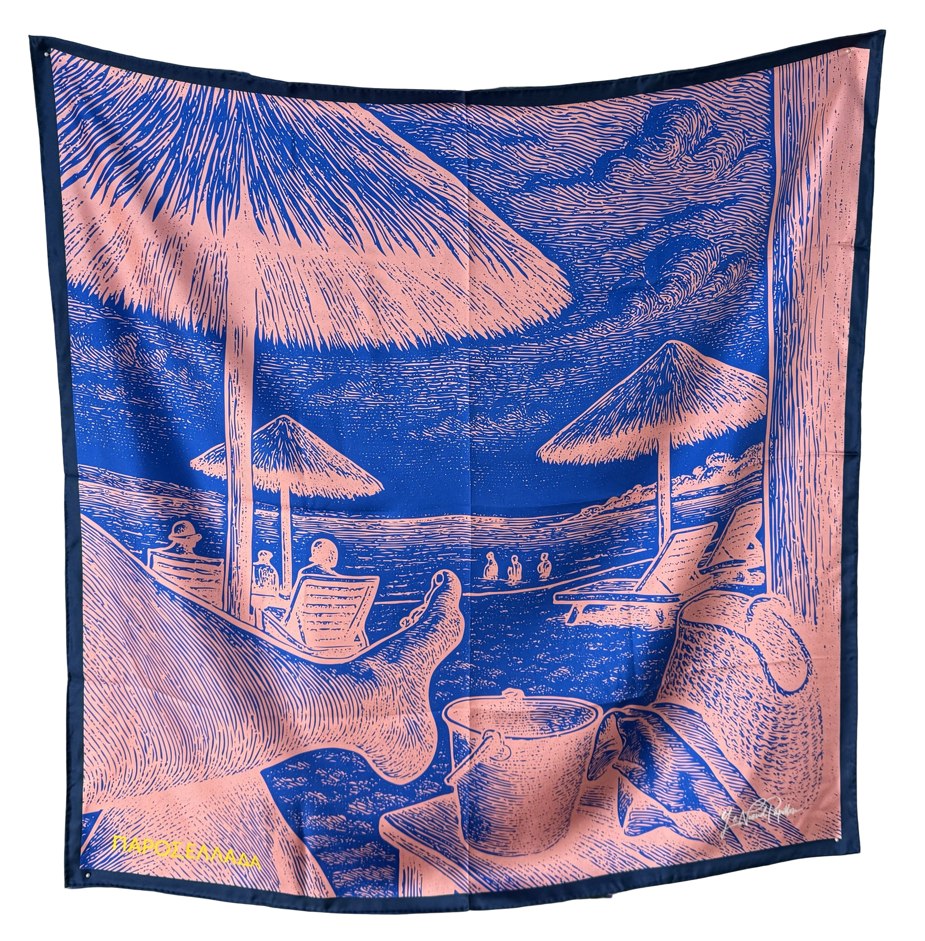 Paros, Greece Double Printed Beach Scene Silk Scarf 90cm