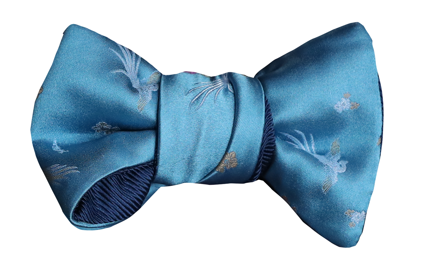 Pierre - Limited Edition Meiji Palace Bird With Blue Silk Twill Reverso Bow Tie